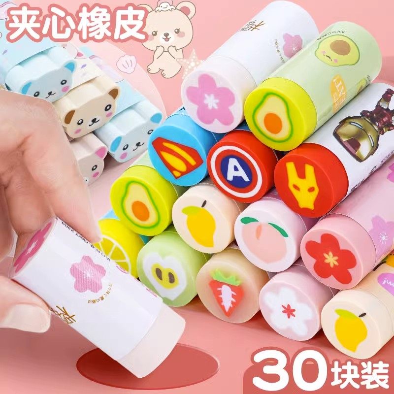 卡通夹心橡皮擦儿童可爱水果动物可切樱花软橡皮美术用干净不留痕少屑切片像皮高颜值幼儿园奖励礼物解压文具