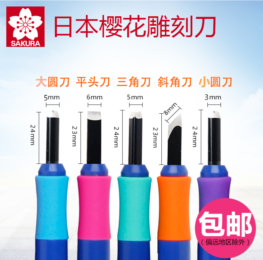 包邮日本樱花牌雕刻刀学生版画木头雕刀橡皮章刻刀单支套装5件套木工纯手工木刻刀