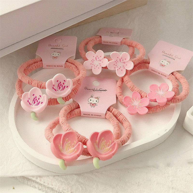 粉色桃花发圈~两个装甜美少女樱花小清新发饰夏季扎马尾橡皮筋女