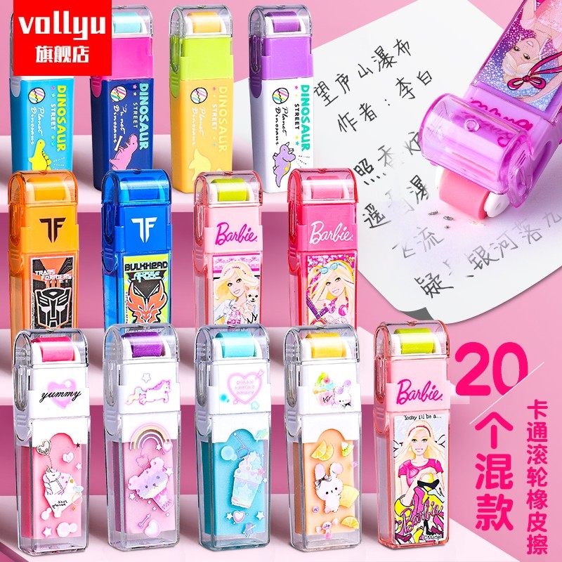 新滚轮橡皮擦不留痕幼儿园樱花恐龙卡通可爱小学生超干净无屑像