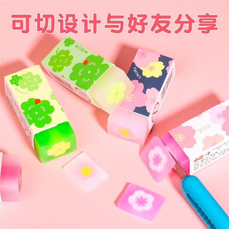 韩国果冻色樱花橡皮擦粉色可爱不留痕儿童可切水晶透明橡皮奖品