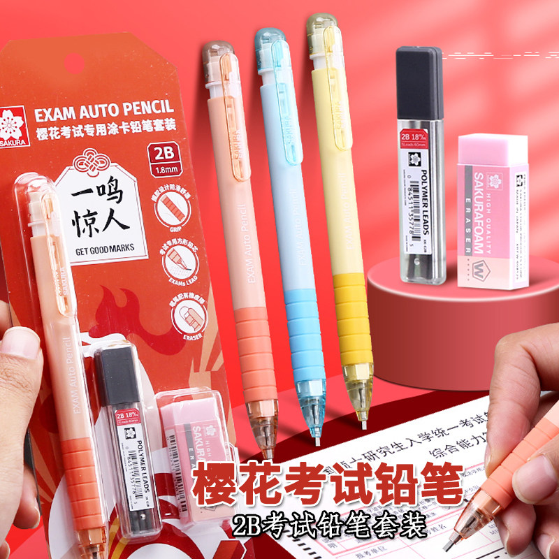 日本sakura樱花涂卡笔套装涂卡器2b机读涂卡考试答题卡用笔2比读卡自动铅笔+橡皮擦+铅芯高考中考学生专考研