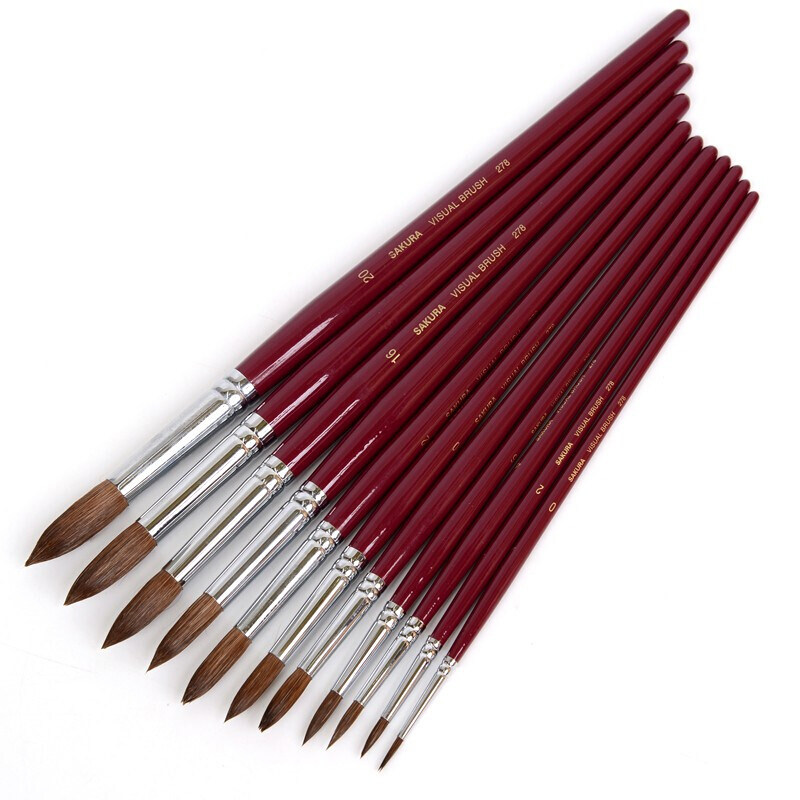日本SAKURA樱花水彩画笔套装美术生专用水粉笔全套颜料工具便携式短杆圆头灰鼠动物毛马毛平头板刷底纹笔刷子