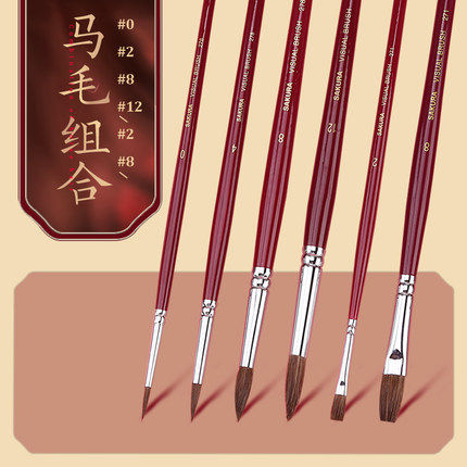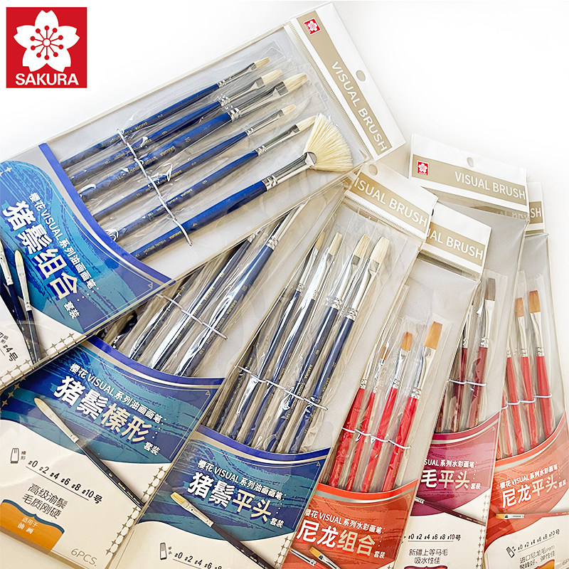 樱花6支画笔组合装水粉笔套装美术生专用水彩画笔油画笔排笔扇形笔画笔颜料笔丙烯专业马毛圆头猪鬃毛软平头