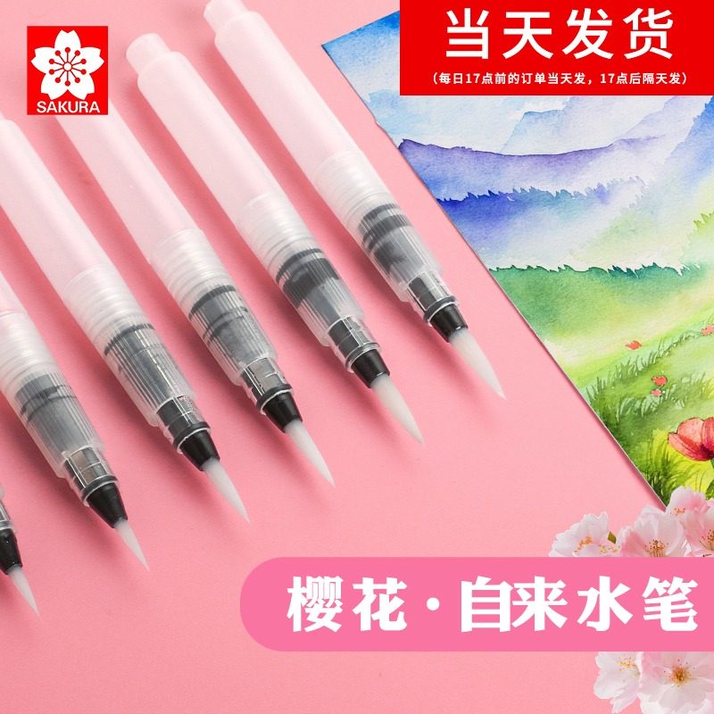 日本樱花自来水笔初学者软头大容量便携储水毛笔套装注水式水彩笔美术生专用颜料水彩画工具储水粉笔水彩画笔