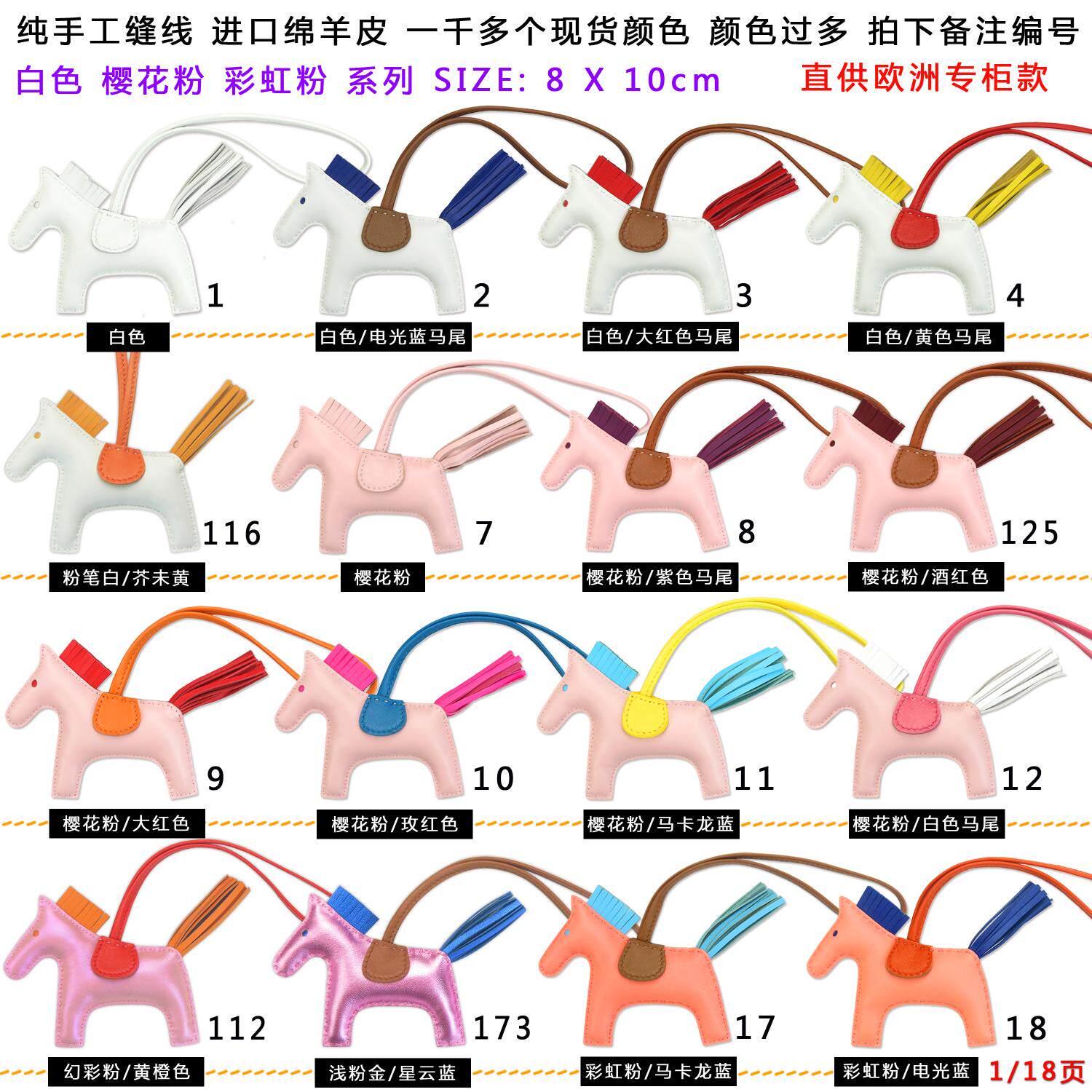 H家小马挂件奶昔白粉笔白色樱花粉红小马驹mini熊猫真皮女包挂饰
