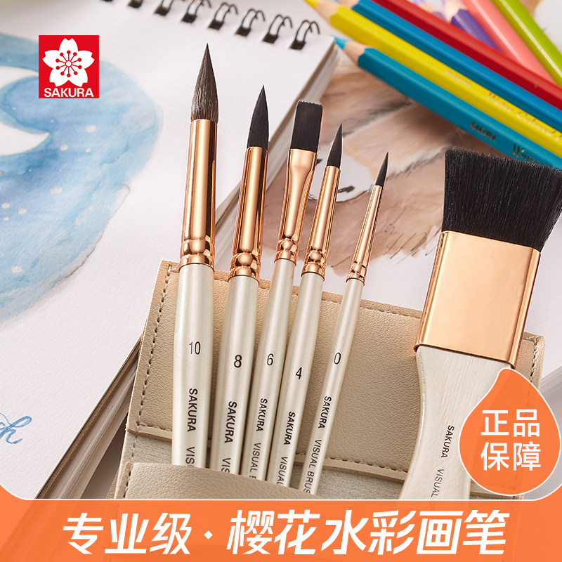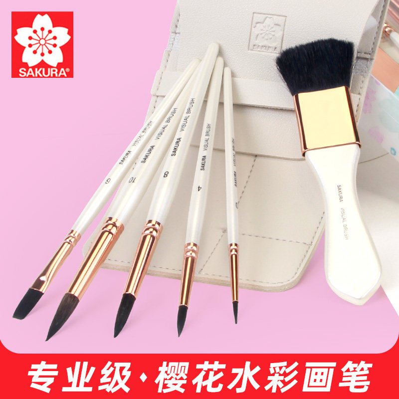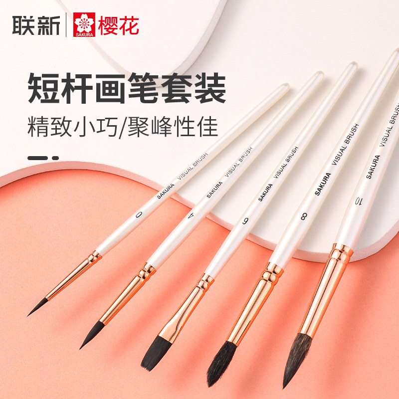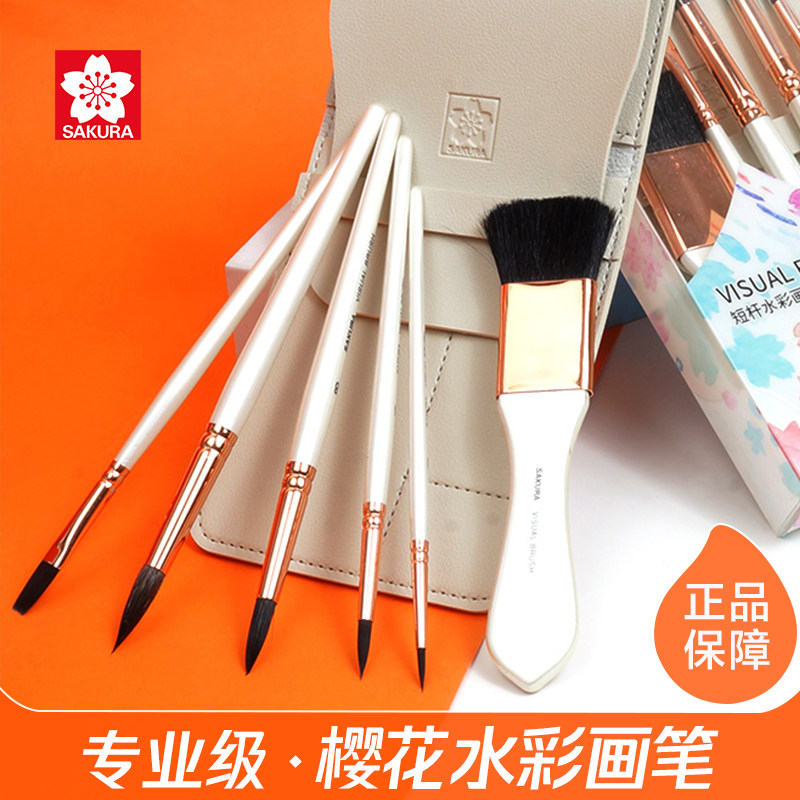 官方旗舰店日本SAKURA樱花水彩画笔套装美术生专用水粉笔便携式短杆圆头灰鼠动物毛马毛平头板刷