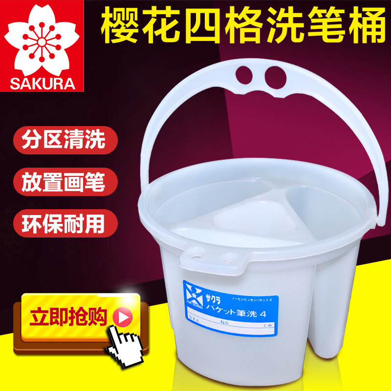 日本樱花4格洗笔水桶涮笔筒水彩笔水粉笔洗笔塑料桶固体水彩颜料清洗蘸水桶
