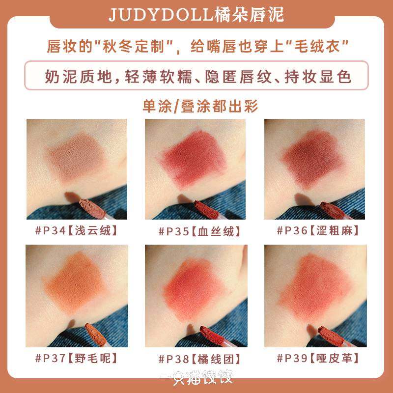 judydoll橘朵锁妆唇泥小磁泥哑光唇釉不易沾杯显白官方正品口红女