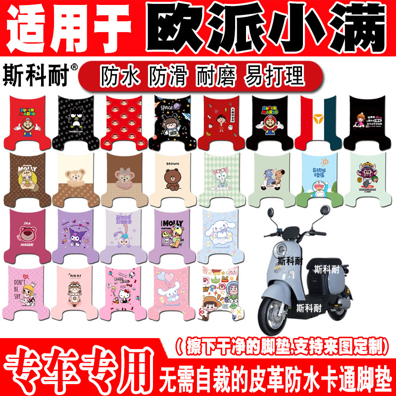 适用于欧派摩羯座电动车脚垫TDT69Z可爱卡通皮革防水防滑脚踏垫