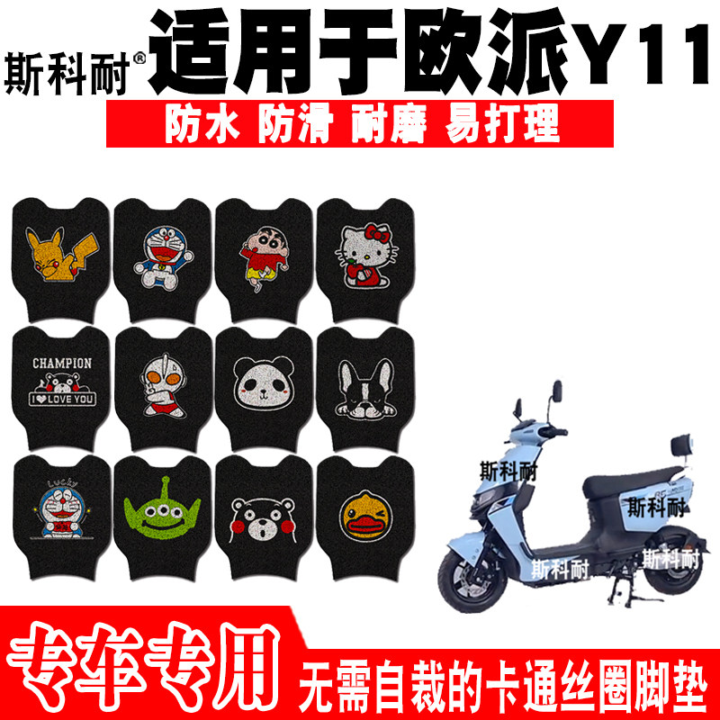 适用于欧派Y11电动车脚垫 欧派Y11可爱卡通防水防滑丝圈脚踏垫