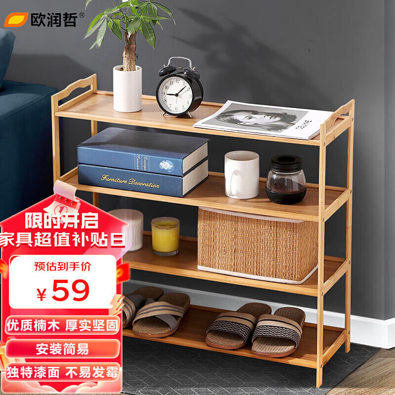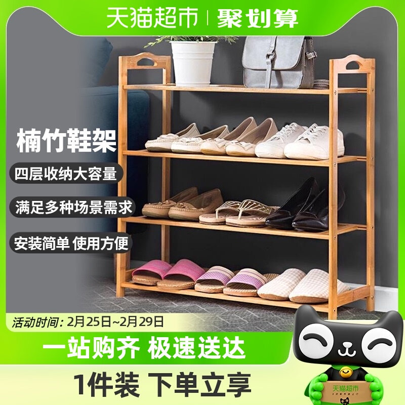 欧润哲鞋架楠竹4层鞋架门口鞋架子多层简易家用鞋柜收纳鞋子置物