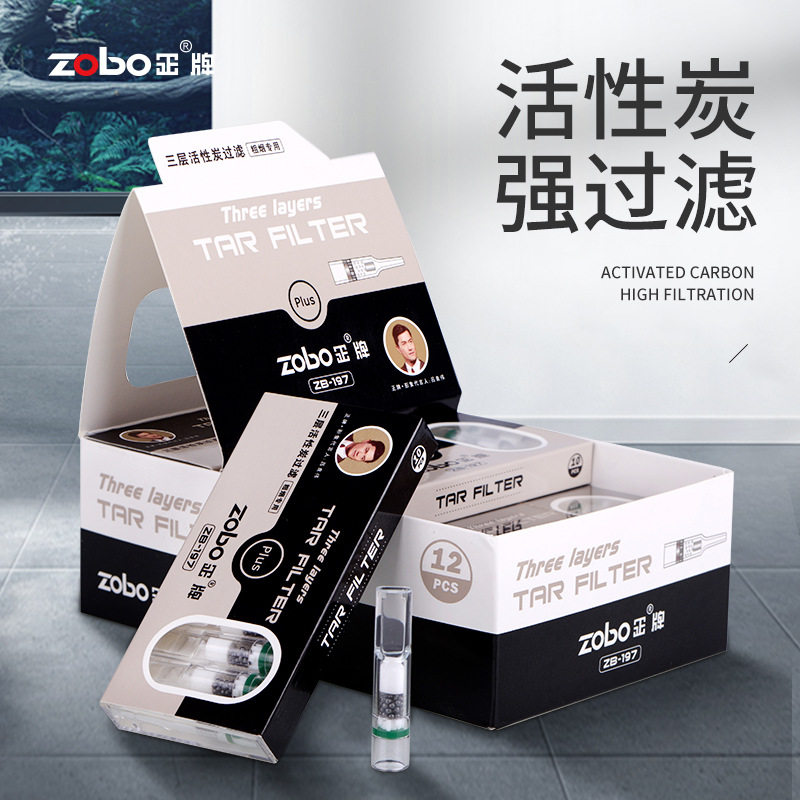 zobo正牌一次性烟嘴过滤器抛弃型三重过滤嘴男士香烟活性炭净烟具
