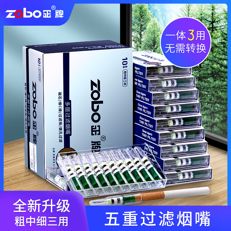 zobo正牌双芯过滤烟嘴过滤器男士一次性粗细支烟活性炭焦油过滤嘴