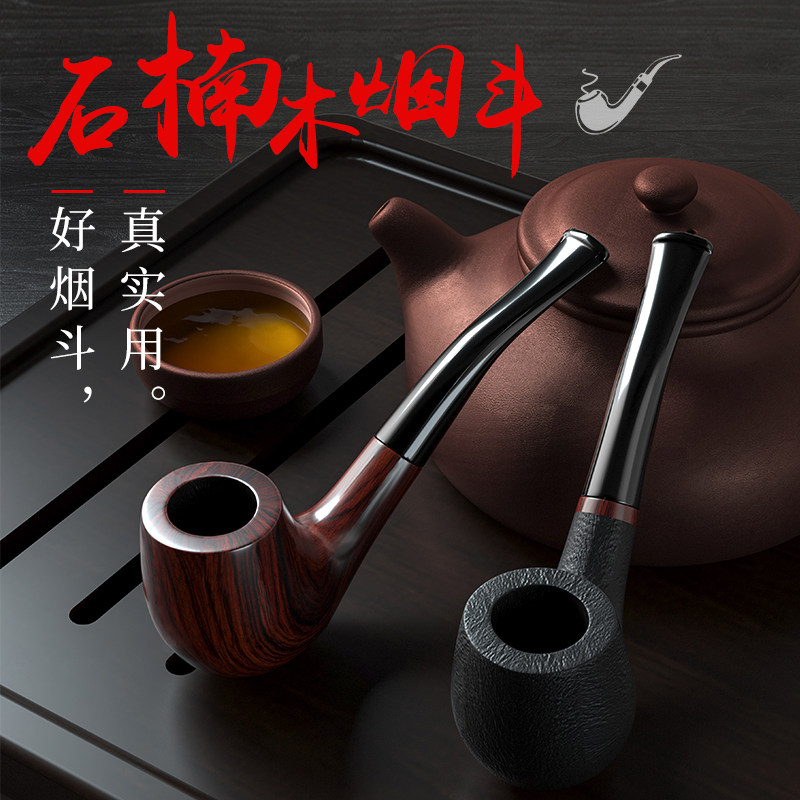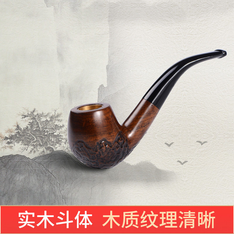 zobo正牌檀木烟斗男士实木手工老式复古雕刻便携弯式手卷烟具套装