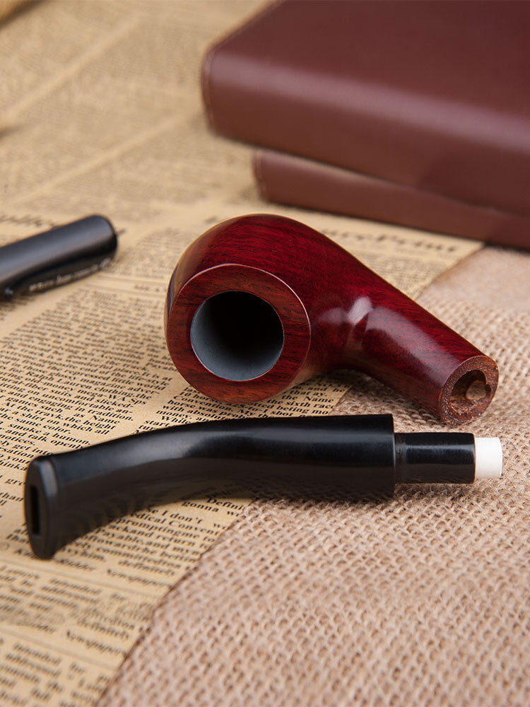 ZOBO正牌红黑檀木手工烟斗弯老式复古实木烟斗男士过滤烟嘴配件