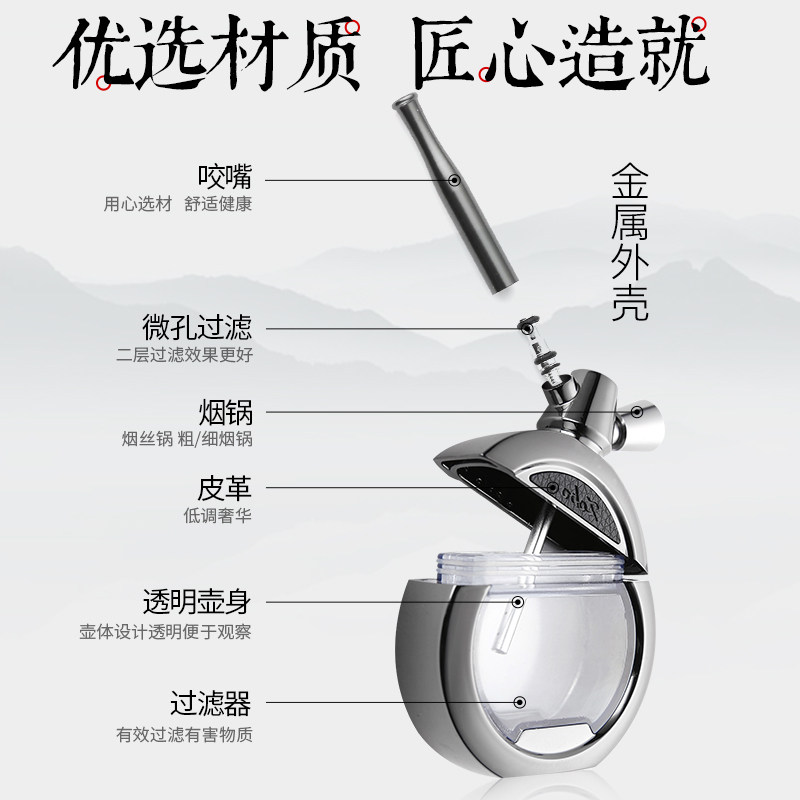 正牌水烟壶粗中细烟斗细烟水烟筒便携循环过滤个性创意男士