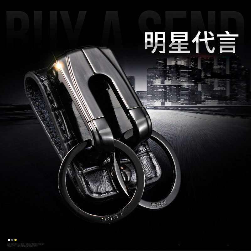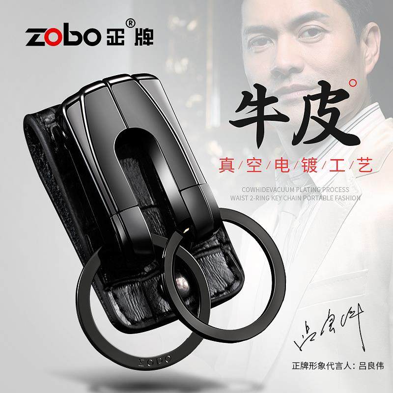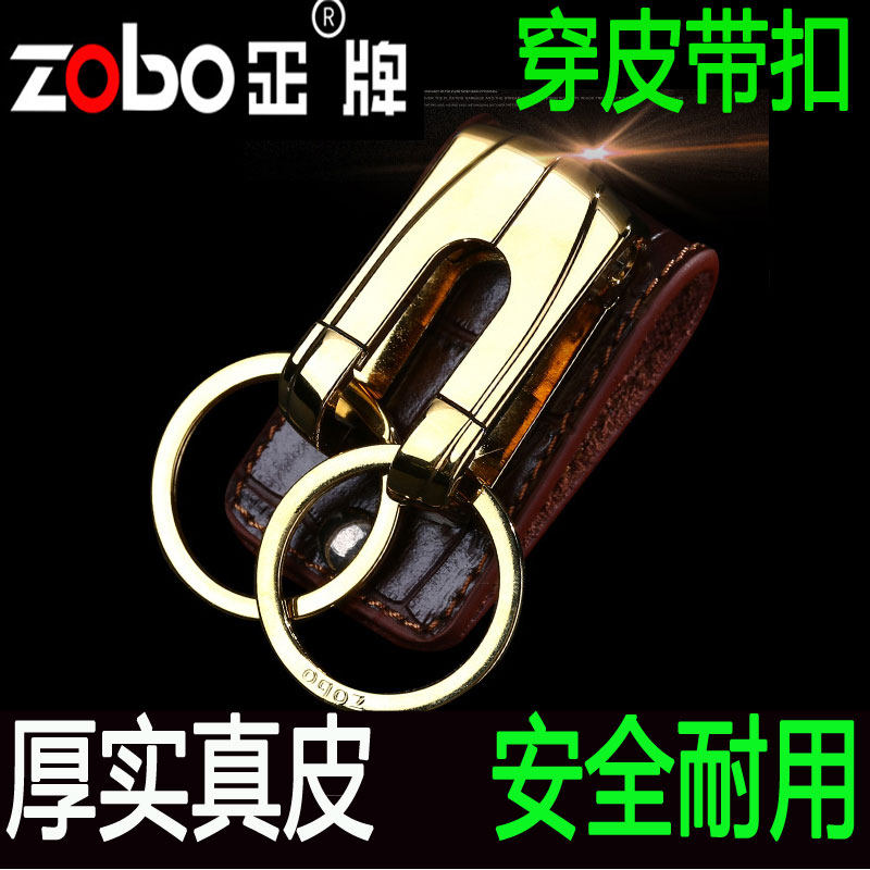 zobo正牌男士双环双扣真皮钥匙扣 汽车腰挂式穿皮带腰带商务礼品