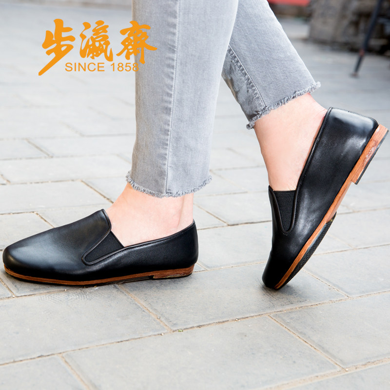 步瀛斋春秋牛皮鞋一字带平底妈妈鞋玛丽珍女鞋中老年皮鞋透气单鞋