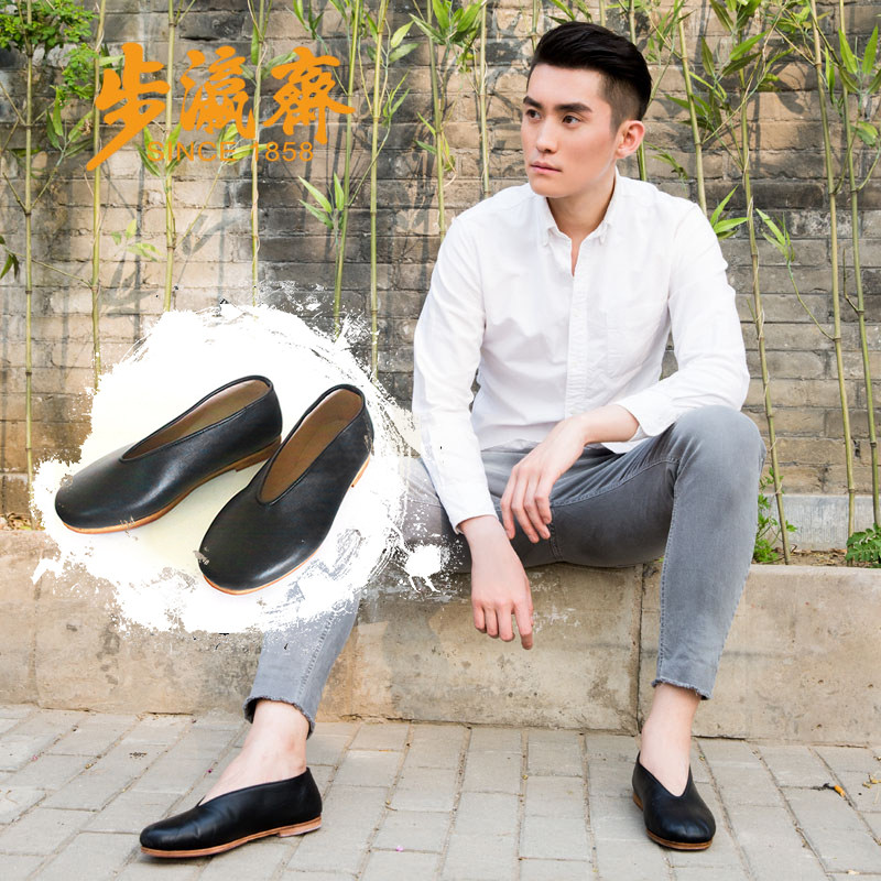 步瀛斋老北京布鞋春季单鞋男士圆口轻便皮鞋中国风休闲开车透气