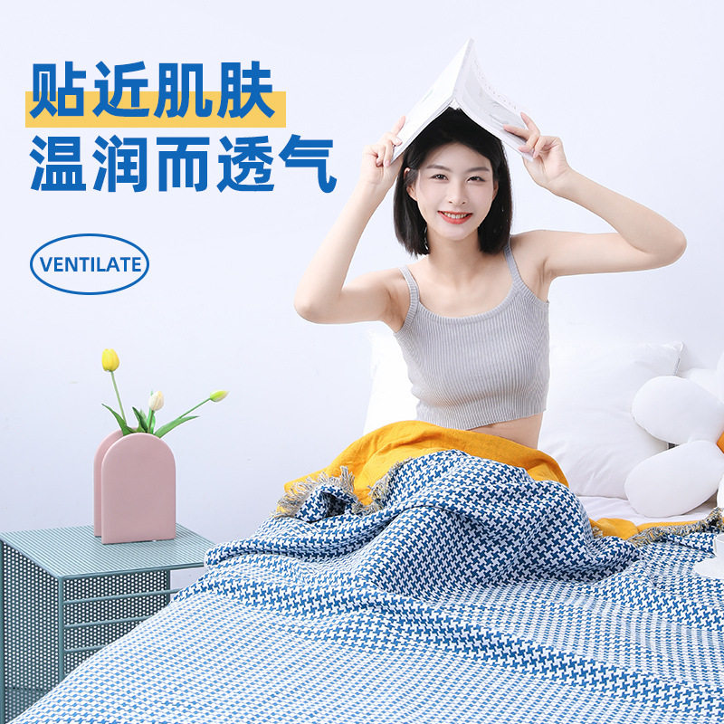 毛毛雨纯棉千鸟格毛巾被办公室空调午休毯沙发毯学生宿舍情侣男女