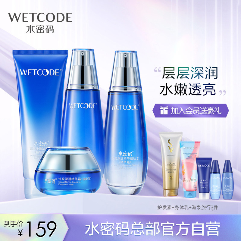 水密码海泉精华护肤品套装正品补水保湿水乳霜三件全套面部化妆女