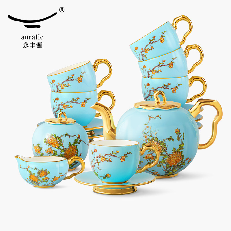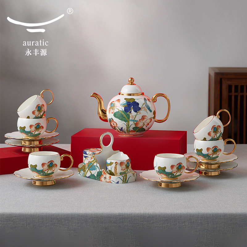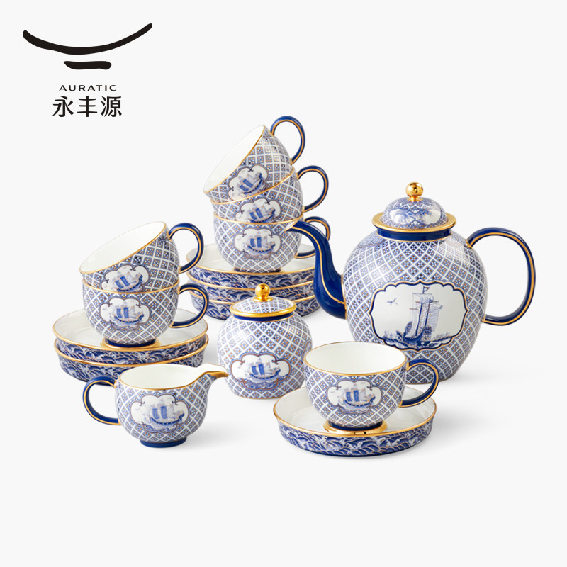 永丰源四海升平17头茶咖具轻奢陶瓷茶具咖啡具茶壶杯碟套装礼盒装