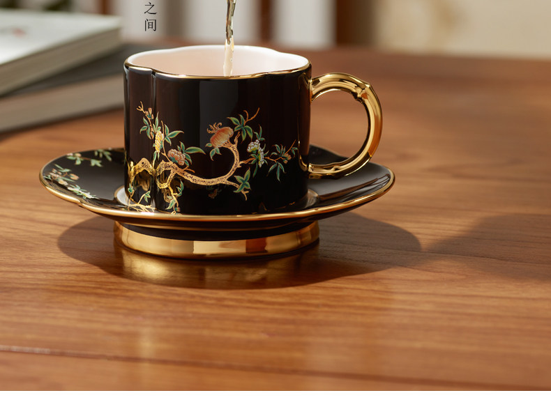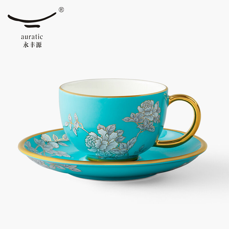 永丰源 水墨牡丹2头150ml陶瓷咖啡杯碟 茶杯主人杯精致下午茶杯碟