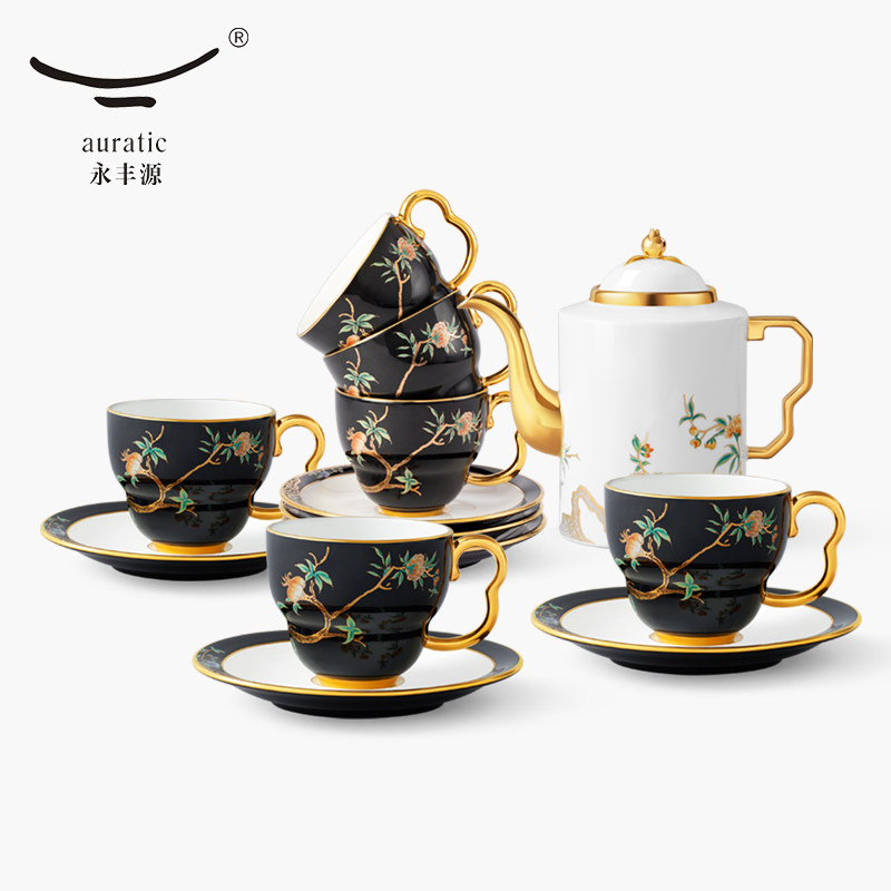 永丰源 夫人瓷石榴家园 17头咖啡具 轻奢下午茶杯碟陶瓷茶具套装