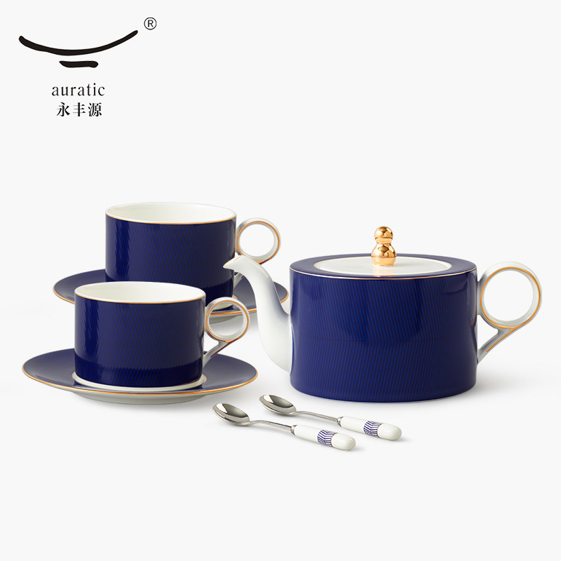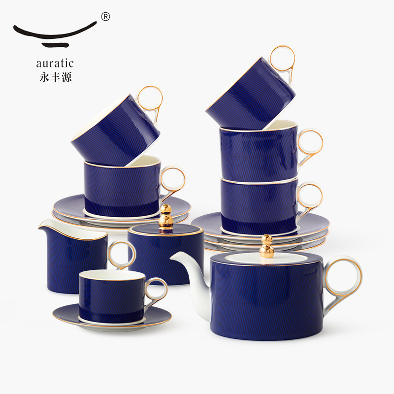 永丰源 夫人瓷西湖蓝 17头咖啡具 咖啡杯咖啡壶套装