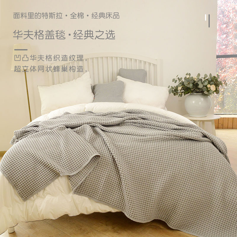 永亮华夫格毛巾被纯棉毯子单人毛毯双人纱布毛巾毯午睡盖毯空调毯