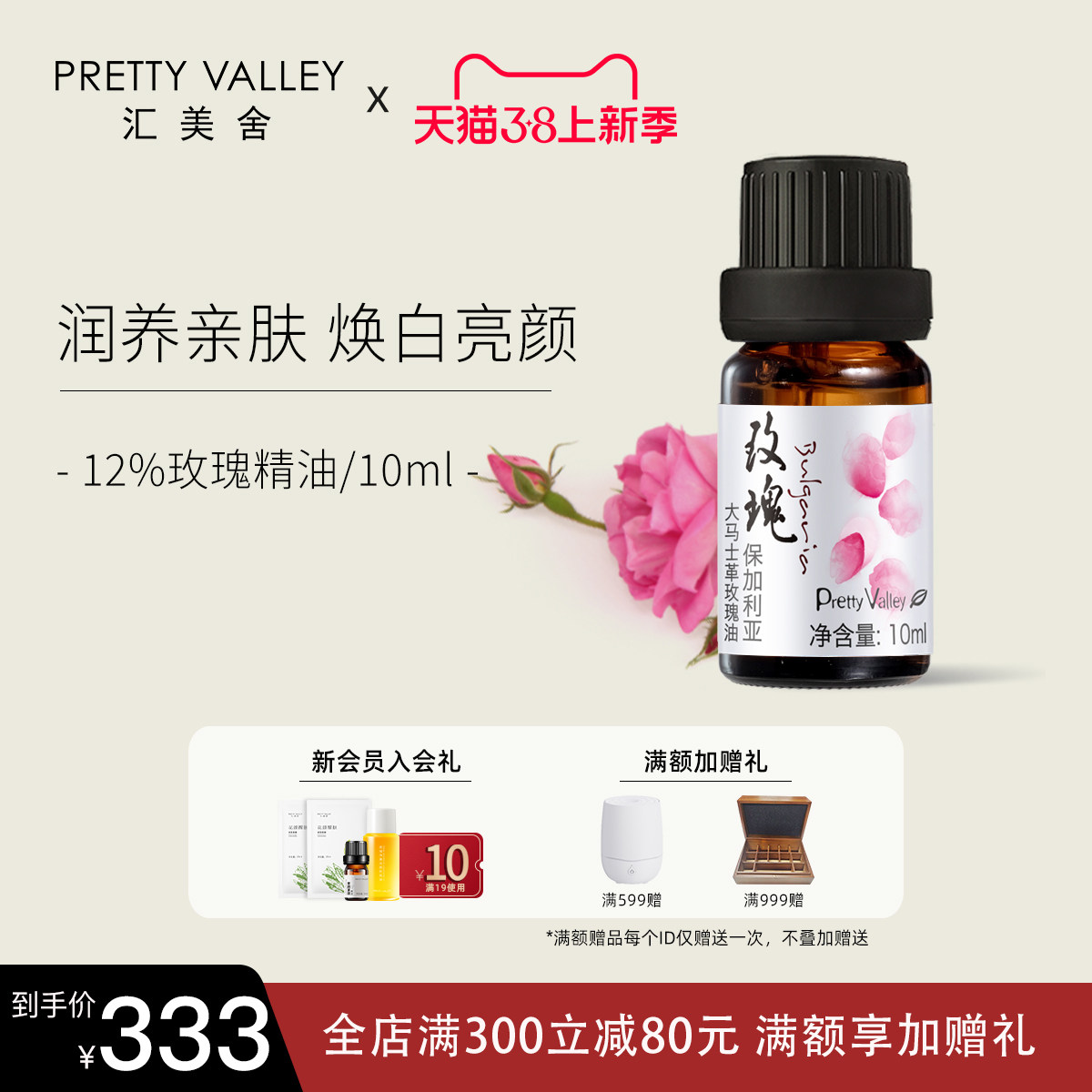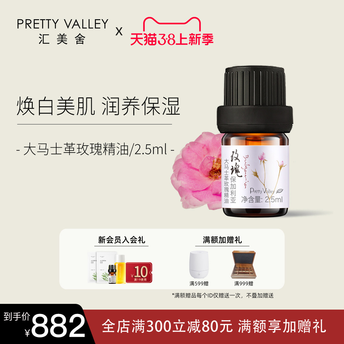 汇美舍大马士革玫瑰精油2.5ml纯植物精油香薰面部护肤身体按摩油