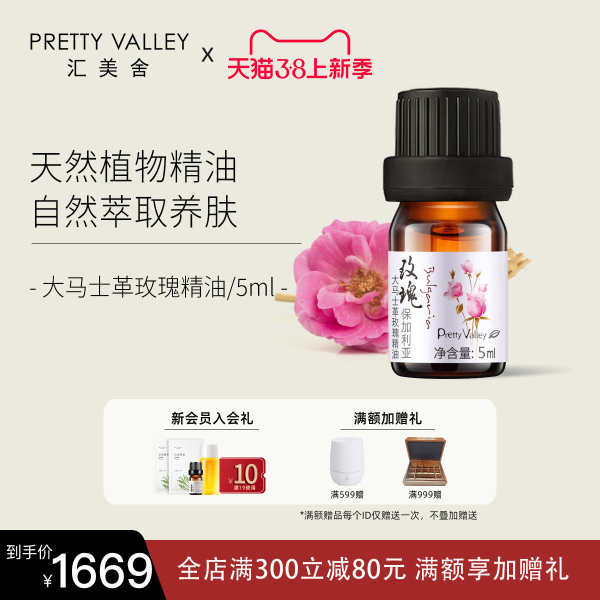 汇美舍大马士革玫瑰精油5ml植物天然香薰面部脸部护肤按摩身体油