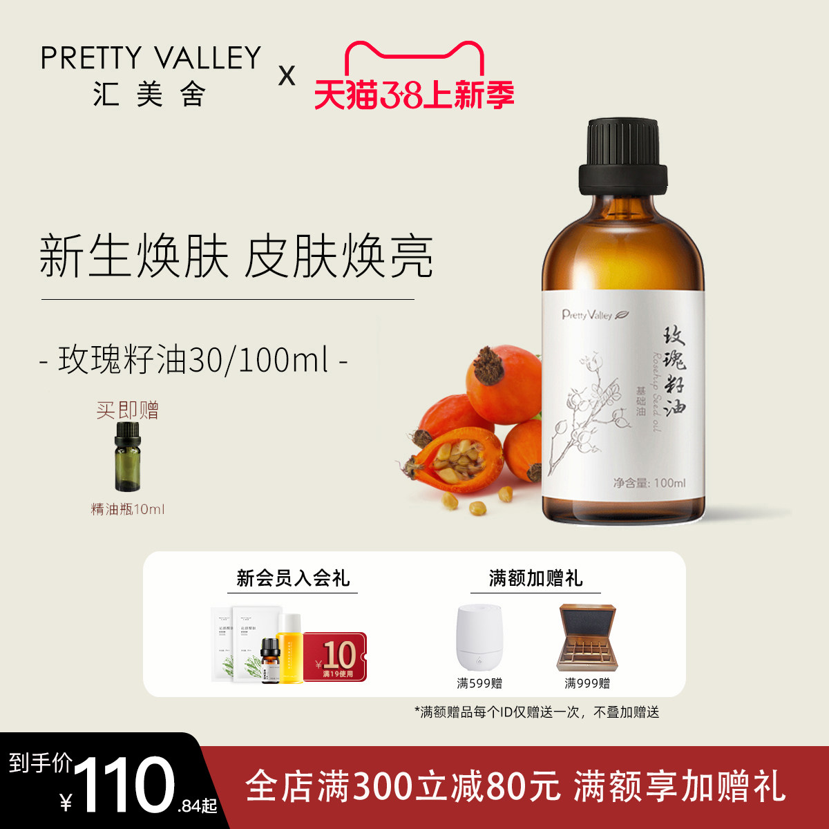 汇美舍玫瑰果油玫瑰籽油护肤精油基础油面部身体按摩油开背刮痧油