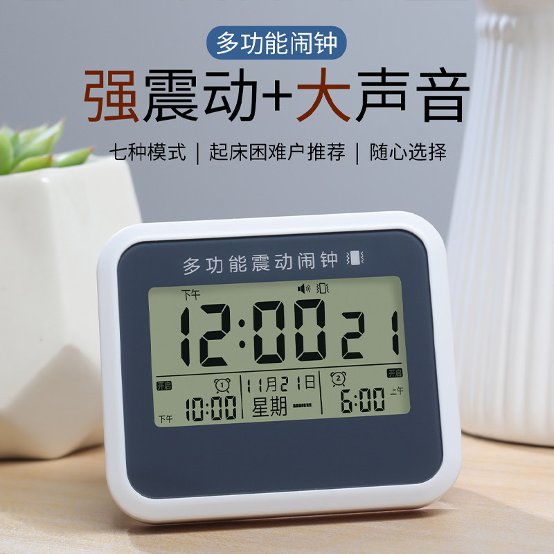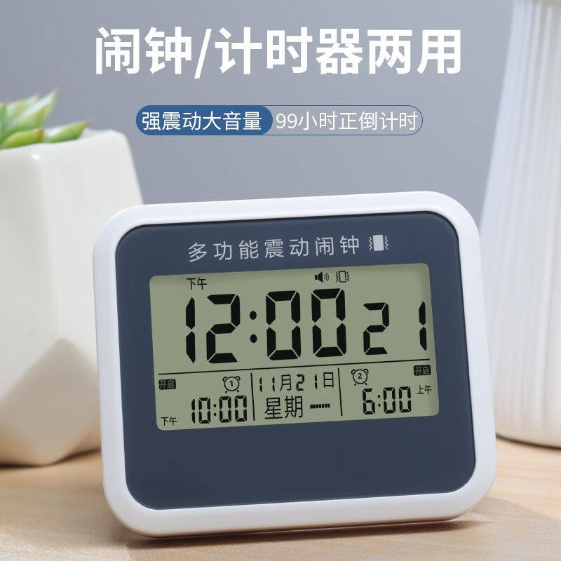 汉时(Hense)多功能震动闹钟计时器充电时钟学生宿舍床头夜光懒