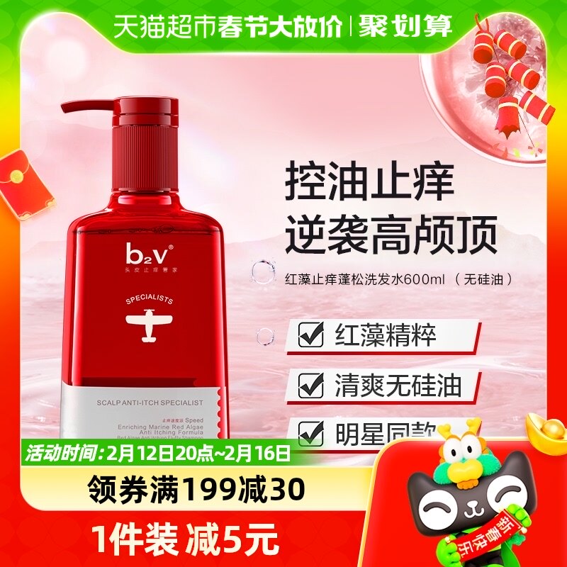 b2v红藻精华去屑止痒去油蓬松洗发水600ml洗发膏无硅油洗发乳