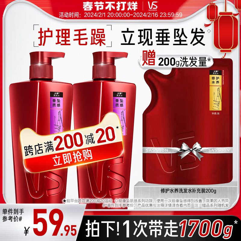 VS沙宣清盈/垂坠质感洗发水套装750g*2保湿护发洗发露直发洗头膏