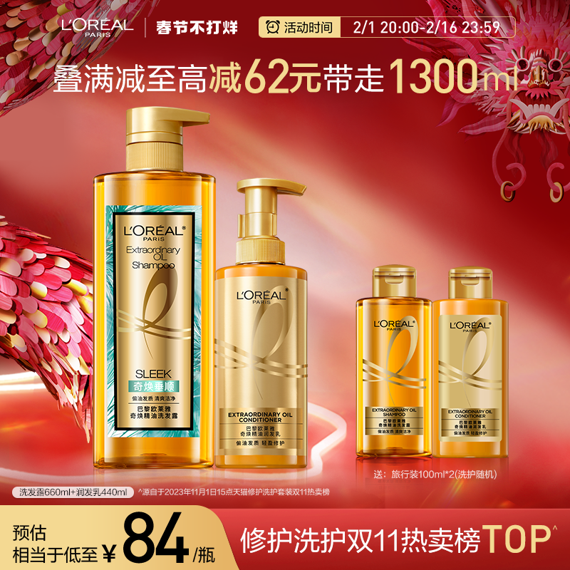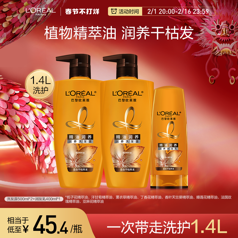 欧莱雅精油润养洗发水护发素洗护套装柔顺顺滑干枯发洗头水洗发露