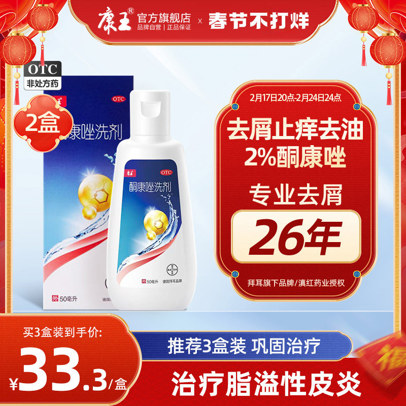 【2盒】拜耳康王酮康唑洗剂去屑止痒洗发水脂溢性皮炎官方正品