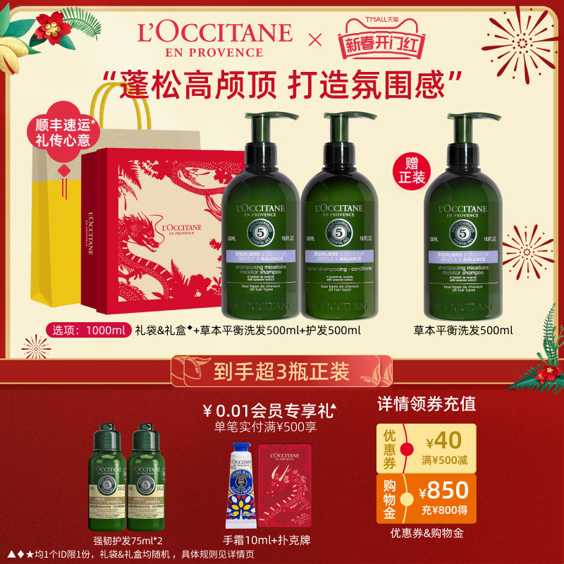 欧舒丹草本平衡洗发水护发素丰盈清洁控油蓬松留香男女士家庭套装
