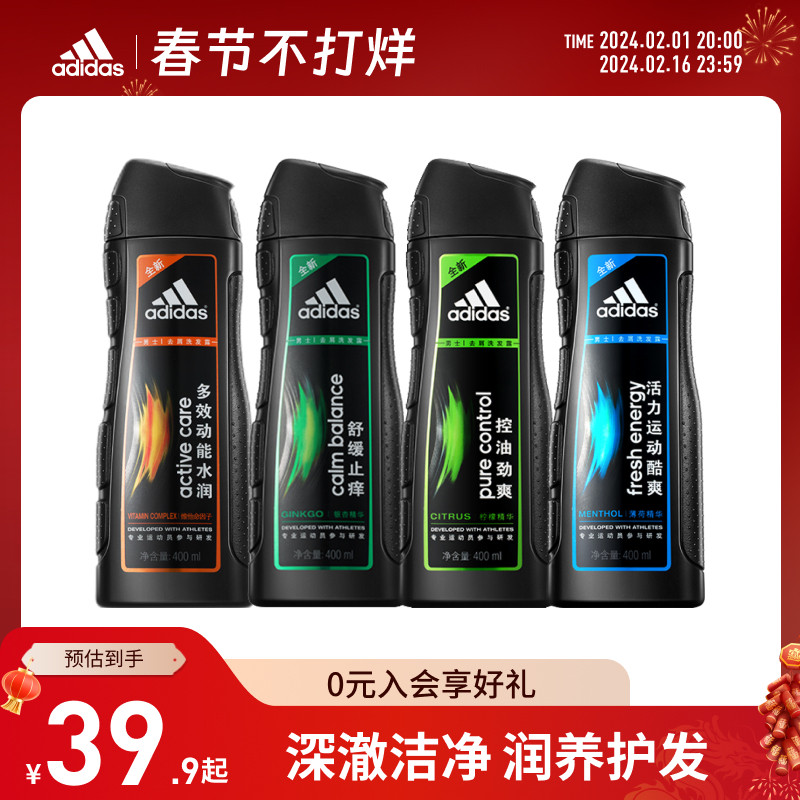 阿迪达斯adidas男士洗发水400ml清爽洗发露持久留香护发