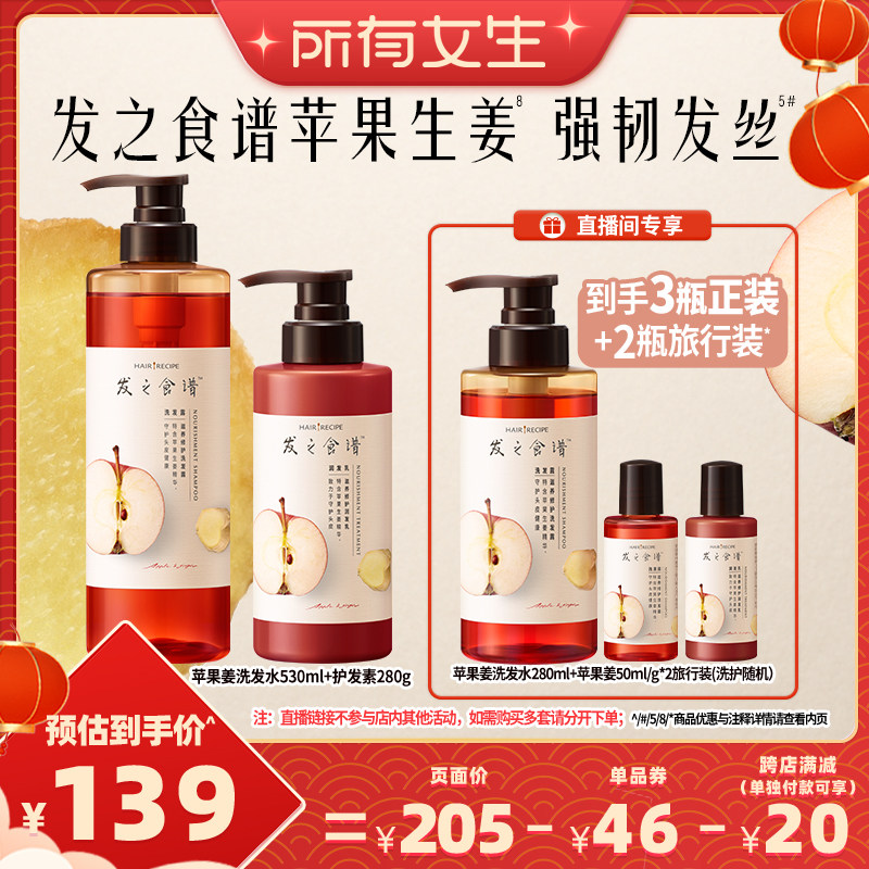 【所有女生直播间】发之食谱生姜苹果洗发水护发素强韧发丝洗头膏