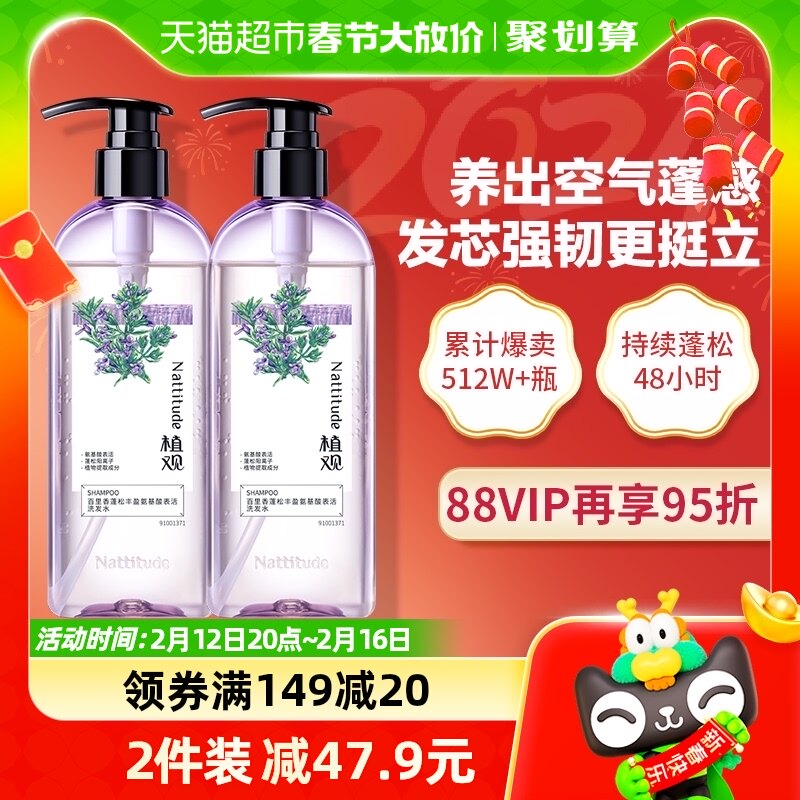 植观丰盈蓬松氨基酸洗发水露无硅油坚韧发丝男女251gx1瓶