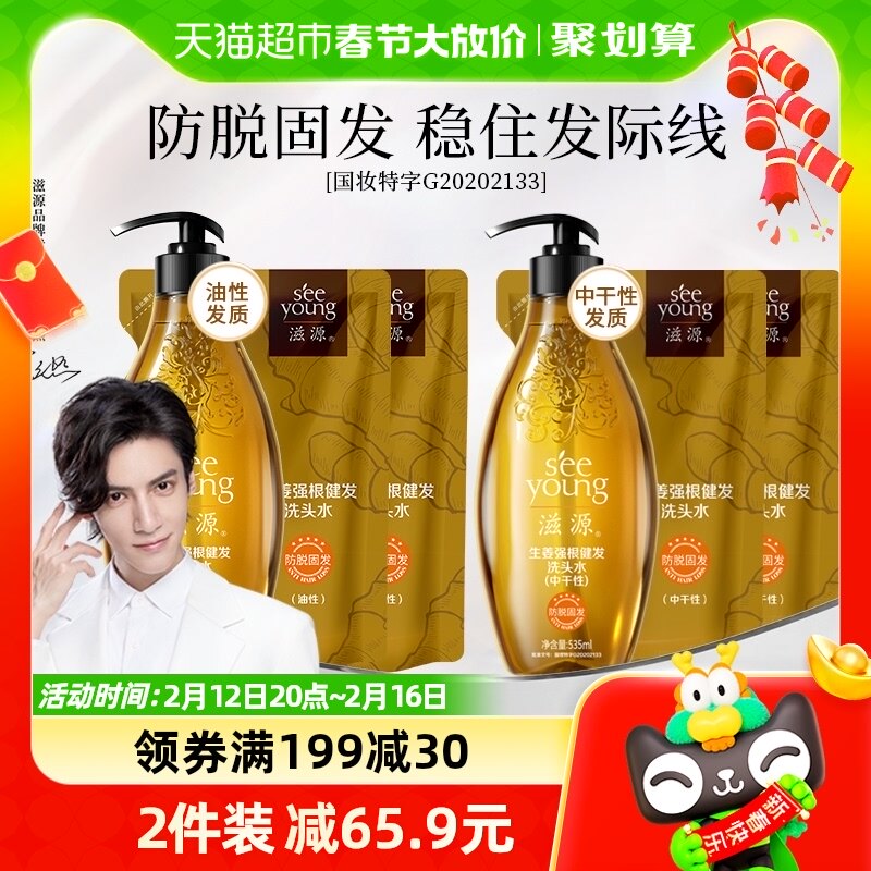 滋源无硅油生姜防脱育发洗发水套装1005ml控油蓬松洗头膏强根健发