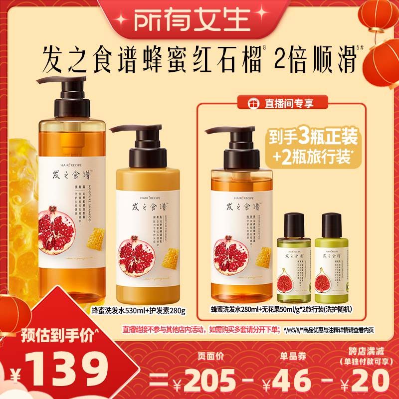 【所有女生直播间】发之食谱蜂蜜石榴洗发水护发素滋养柔顺洗头膏