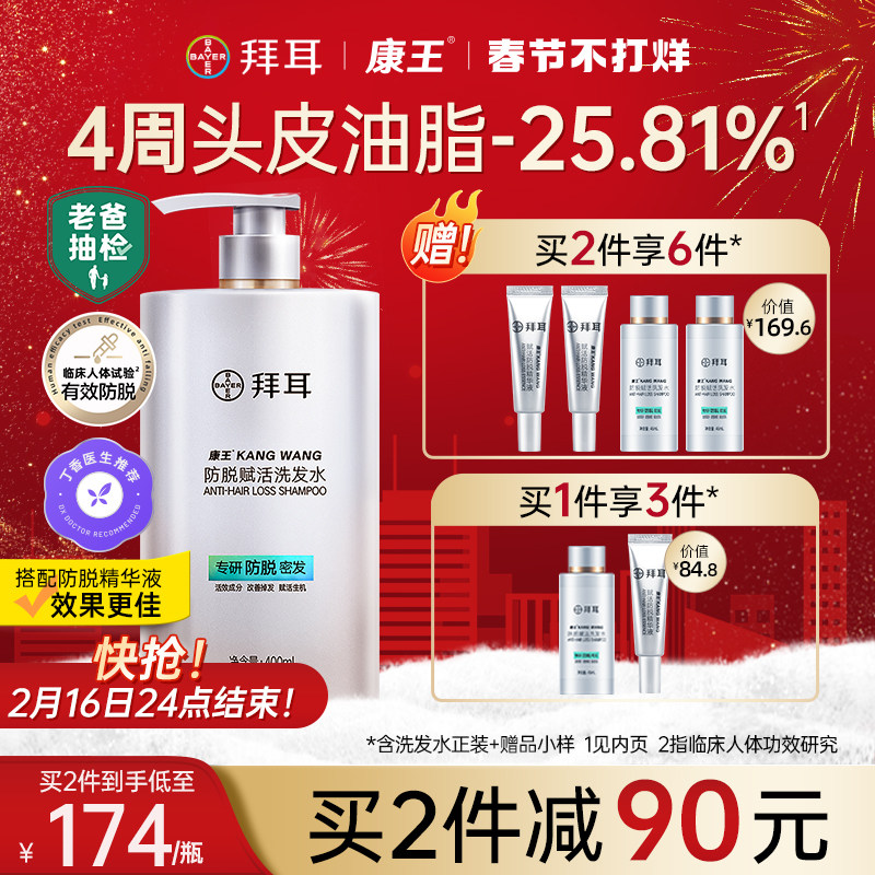 【快抢买2到手6件】拜耳康王头皮防脱控油蓬松育发腺苷洗发水