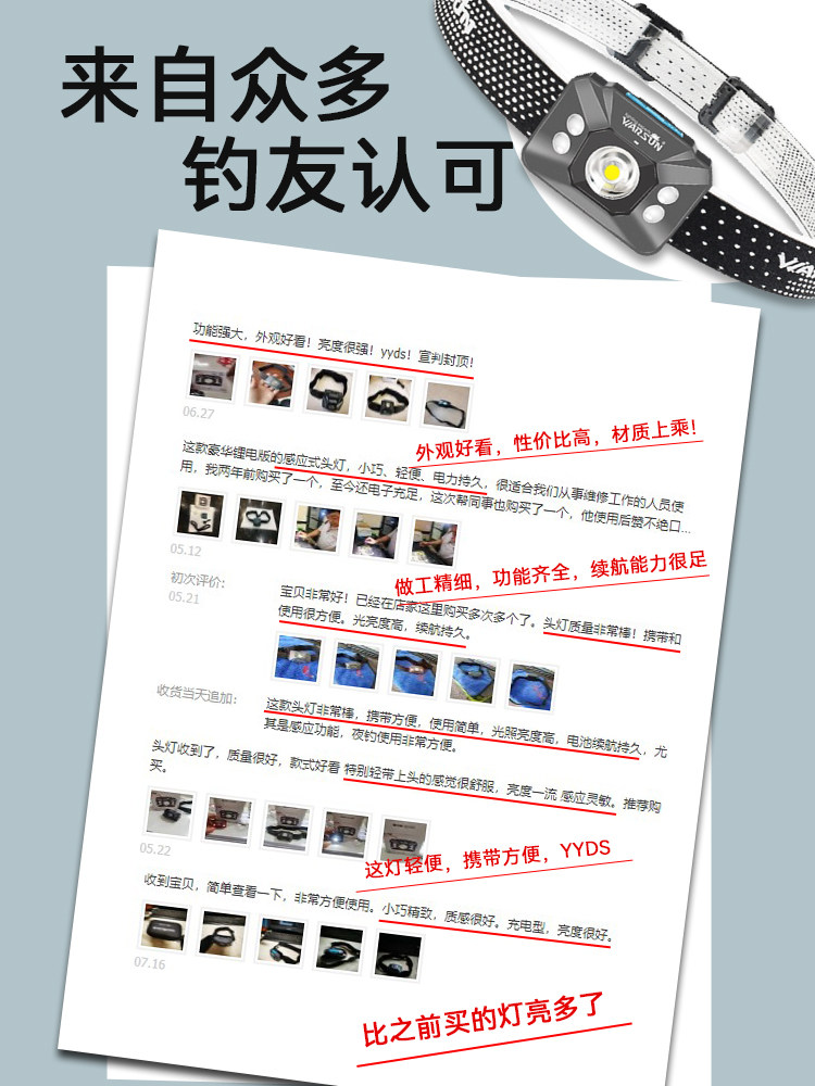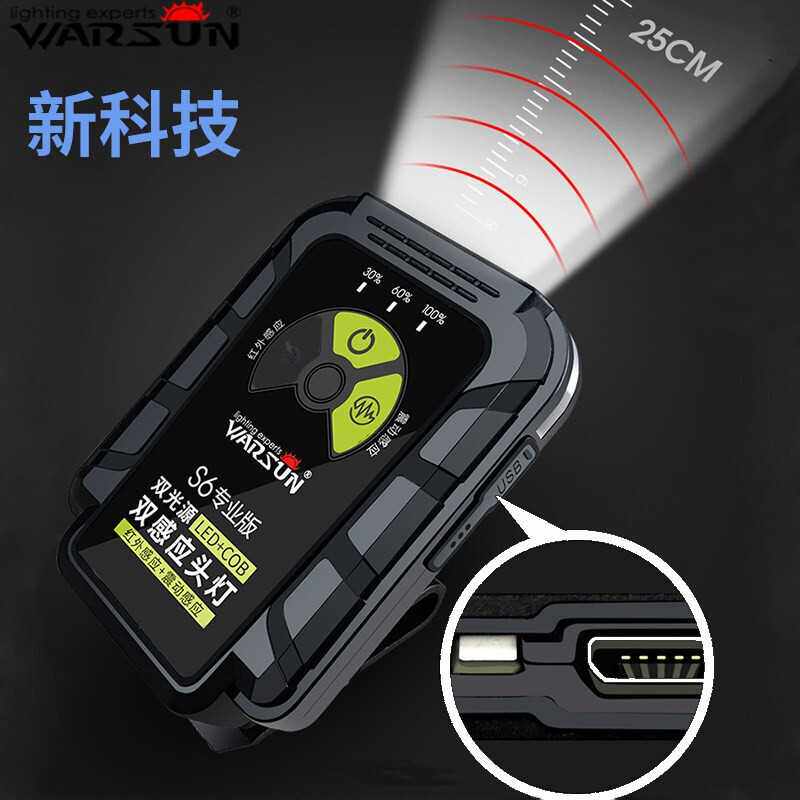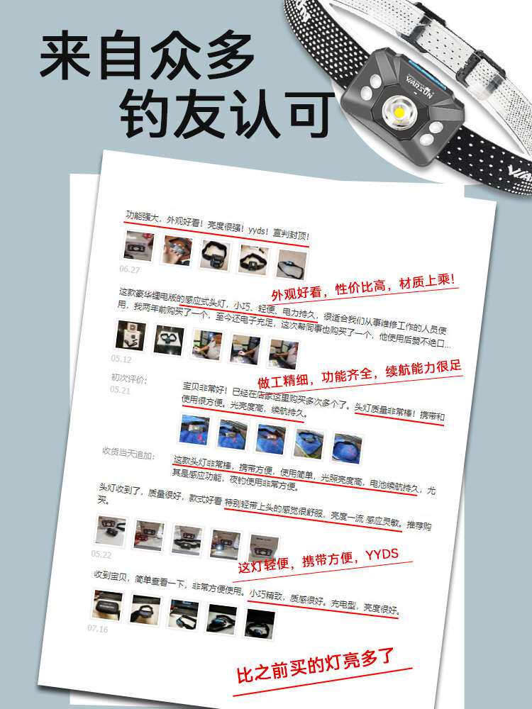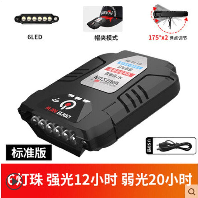 沃尔森 钓鱼感应头灯夜钓灯可充电强光LED夹帽灯头戴式防水 第六