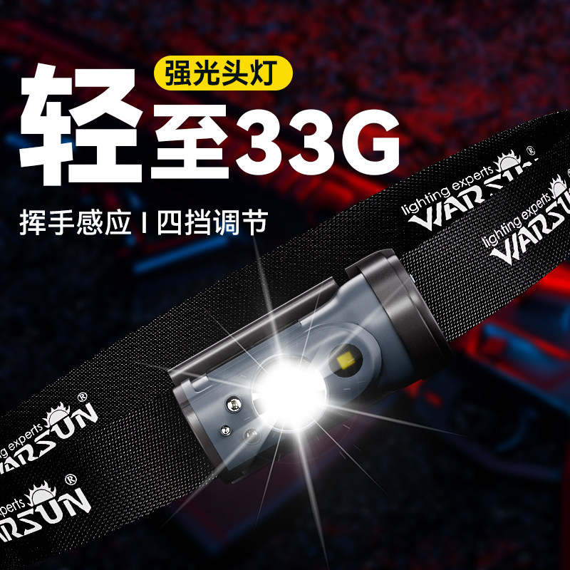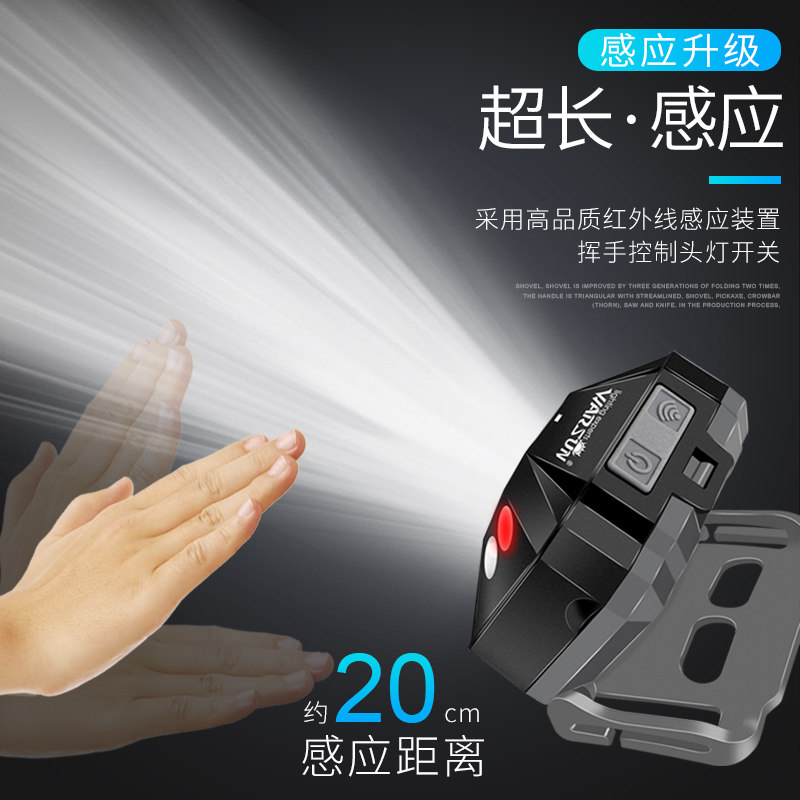 沃尔森T101感应头灯钓鱼灯超轻迷你头戴式灯户外夜钓充电超亮防水