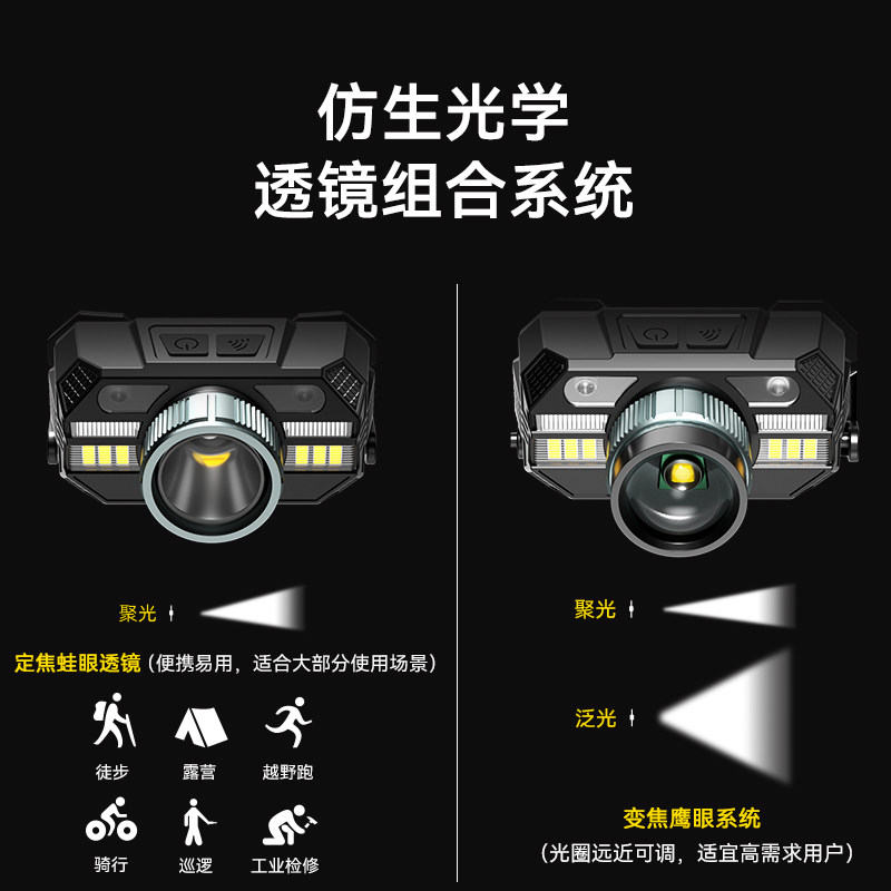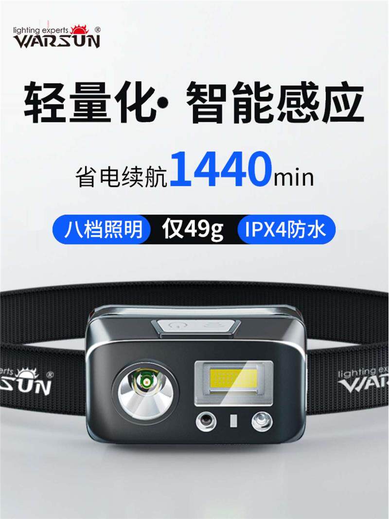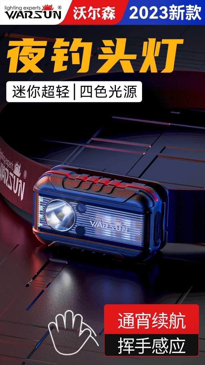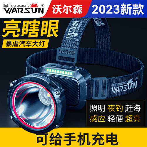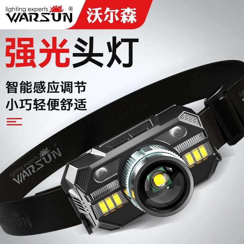 沃尔森感应头灯强光夜钓鱼专用充电户外超亮头戴式超轻型超长续航