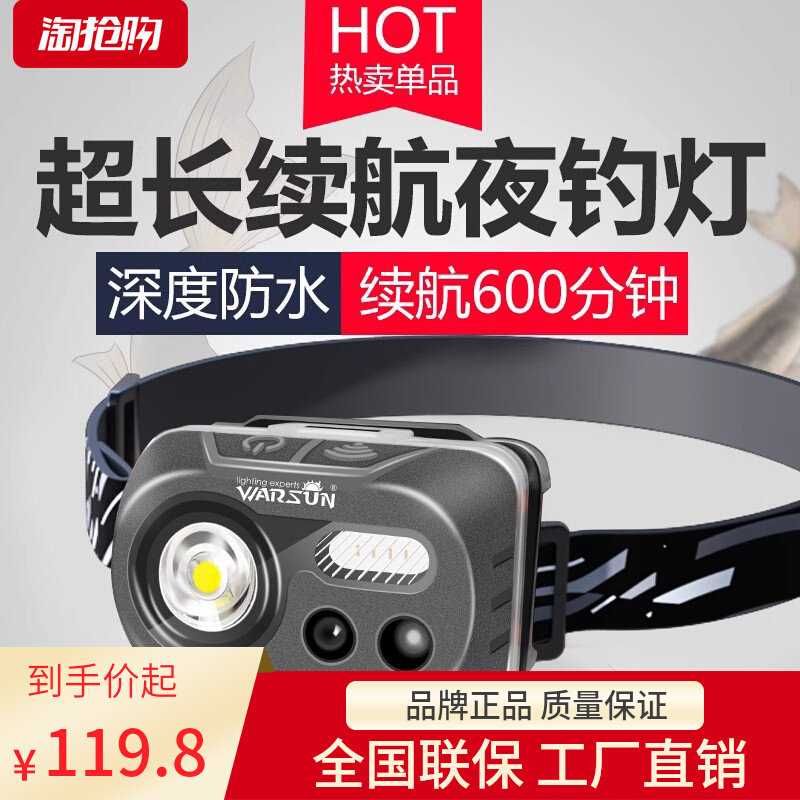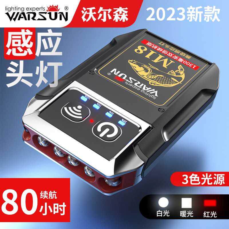 沃尔森夜钓感应白鲸金鲤m18头灯钓鱼专用全新防水超长续航80小时